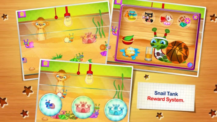 To keep children motivated, our app features a rewarding system. Players earn stars for completing games, which can be used to populate a digital glass tank with snails, castles, or plants. Children can care for their snails by cleaning, feeding, and even dressing them in adorable hats. This interactive feature encourages kids to continue practicing and learning math while having fun caring for their virtual pets.