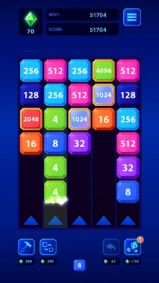 - Merge Identical Blocks: Connect identical blocks to merge them into higher numbers, gradually ascending the numerical ladder.