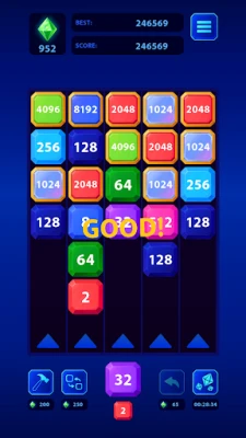 - Endless Gameplay: Dive into a world where challenges are limitless! Test your intellect and endurance as you aim for record-breaking merges. Strive to surpass the 2048 block and see how far you can go!