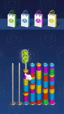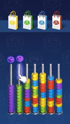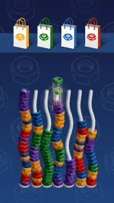 Begin by selecting a nut from the available bolts. Your choice should be strategic; ensure that the nut you pick matches the color of the nut you intend to transfer it to. This color-matching mechanic adds an extra layer of challenge, requiring you to think critically about your moves.
