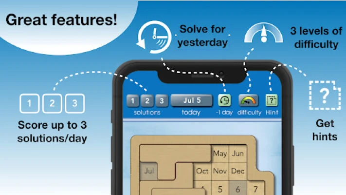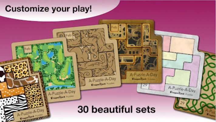 Transform your daily routine into an exciting challenge with our unique calendar puzzle app! Simply arrange the eight pieces into the calendar frame to reveal today’s date. With endless possibilities, every day brings a new adventure!