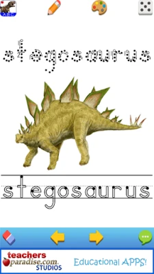 Writing can be a fun and engaging activity, especially when it involves dinosaurs! The app includes 294 Dinosaur Handwriting Pages that allow users to trace both lowercase and uppercase letters alongside the names of their favorite dinosaurs. This feature is perfect for young learners who are just starting to develop their writing skills. By associating letters with exciting dinosaur names, children will be motivated to practice their handwriting while learning about these magnificent creatures.