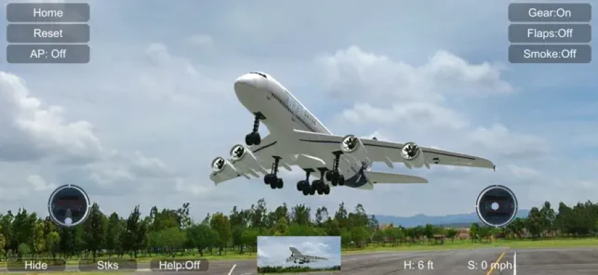It’s important to note that this is not just a game. You are in control of flying RC models that behave like real aircraft. While it may take some time to master the controls, the learning curve is part of the excitement. The on-screen control sticks serve as indicators and are designed to be small so they don’t obstruct your view. Simply slide your finger on the right side of the screen to manipulate the right control stick, and do the same on the left side for the left control stick. You don’t need to keep your fingers on the sticks, allowing for a more fluid flying experience.