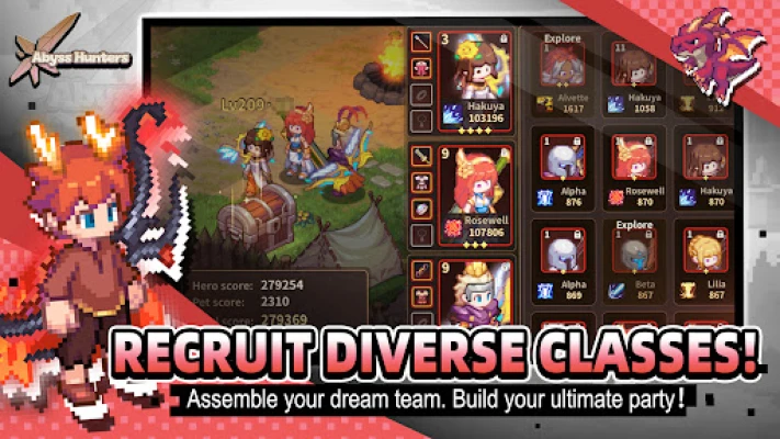 Prepare yourself for an exhilarating journey filled with fantasy adventures and magic in Abyss Hunters, a classic idle Roguelite RPG that brings together stunning HD-2D pixel art-style heroes, formidable monsters, epic loot, thrilling raids, and challenging abyss bosses!