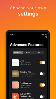 - Advanced Ad Blocking: Effectively block annoying ads, intrusive trackers, and malware across your device.