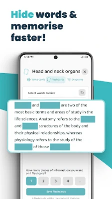 This feature allows you to create interactive learning experiences by hiding specific words in a question. Ideal for definitions or memorizing paragraphs, you can simply snap a picture of your textbook, and Voovo will automatically scan the text, enabling you to create fill-in-the-blank flashcards effortlessly.
