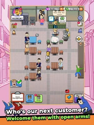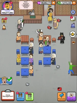 Recruit your favorite Jjaltoon characters to join your restaurant team. However, keep an eye on those who might prefer to slack off; they can tire out quickly! To keep morale high, offer them coffee, a little pocket money, and occasional bonuses. Start your journey as a novice and work your way up to becoming the ultimate restaurant boss!