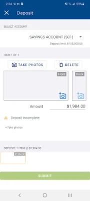 - Deposit limits and restrictions may apply. The Mobile Check Deposit Service is subject to eligibility.