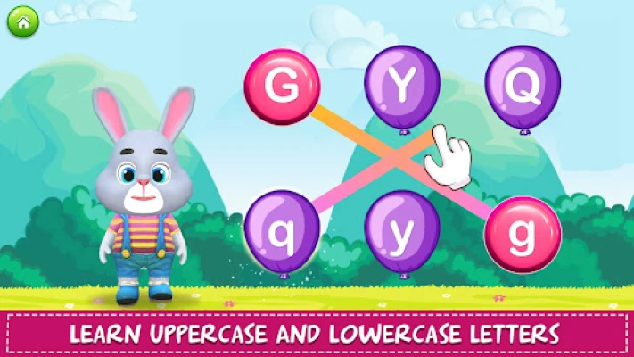 - Comprehensive Learning Tools: The app includes various games that help children recognize letters, match uppercase with lowercase, and engage in letter pairing activities.