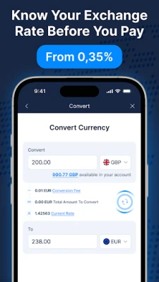 Additionally, our instant currency exchange feature allows you to convert currencies in seconds, enabling you to hold funds in GBP or EUR as needed. Our competitive exchange rates ensure that you get the most value for your money in the online banking market.