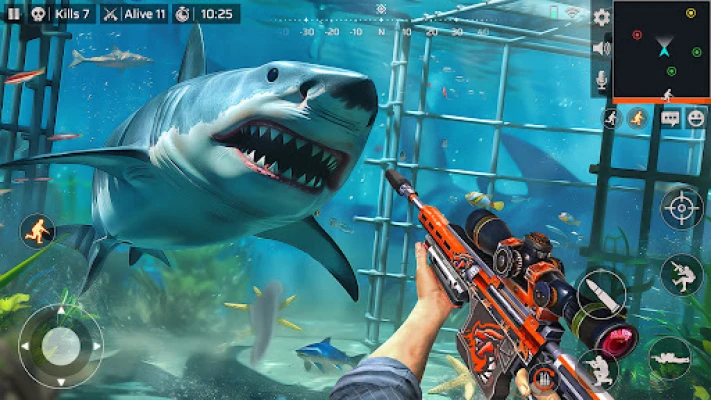 For optimal safety, try to hunt sharks from a distance using a sniper rifle. If a hungry shark gets too close, it could jeopardize your health in these thrilling shooting games. Pay attention to the hunched backs of sharks; this posture indicates they are agitated and ready to strike.