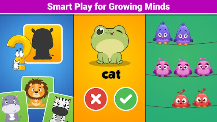 Introduce your little ones to the fascinating world of animals with interactive games designed to enhance their vocabulary, memory, and cognitive skills. These engaging activities not only entertain but also educate, ensuring that your children learn the names of various pets, farm animals, jungle creatures, zoo inhabitants, and aquatic life in a playful environment. With delightful sounds, animations, and interactive elements, your kids will be motivated to explore and learn without the worry of losing any game pieces!