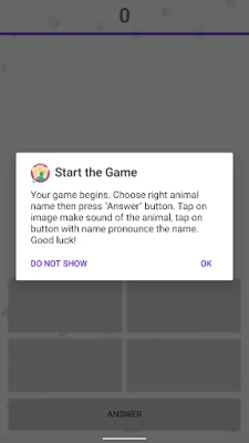 To make learning even more enjoyable, the app includes a quiz game that tests animal knowledge. Children can select the correct animal name and click the "Answer" button to see how well they know their furry, feathered, and scaly friends. When they tap on the animal's picture, they will hear its sound, and tapping on the name will pronounce it, reinforcing their learning experience.