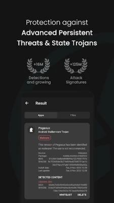 One of the unique features of Protectstar™ Antivirus AI is its ability to detect and protect against state trojans, which are often used by government organizations and law enforcement agencies. With over 5 million Android users, the app has registered over 28,000 detections of such Advanced Persistent Threats (APTs).