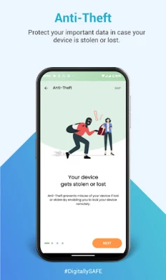 The app also offers protection against malicious and phishing websites, as well as fraudulent links, through its safe browsing feature. It has an anti-theft feature, allowing users to remotely lock, locate, and wipe their device if it is lost or stolen. The app also has an intruder alert feature, which captures the image and location of anyone trying to access the device without permission.