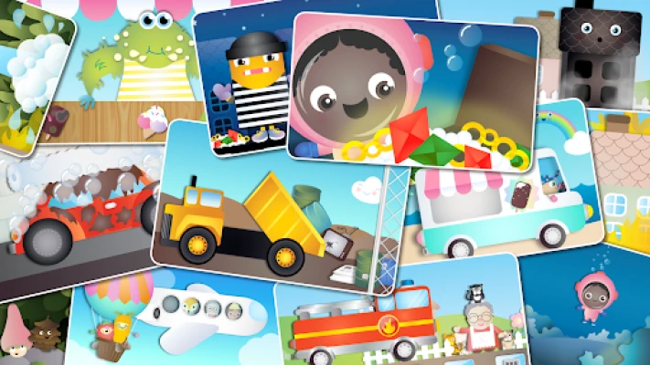 This free kids' game offers a total of 8 engaging games and 8 jigsaw puzzles, featuring a variety of vehicles and fun elements. The content is thoughtfully crafted to appeal to both boys and girls, ensuring that every child finds something they love.
