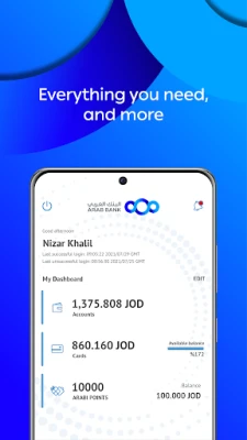 Perform a variety of transactions with ease. The Arabi Mobile app enables you to make transfers, card payments, and bill payments to numerous billers. Whether you need to send money to a friend or pay your utility bills, the app simplifies the process.