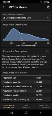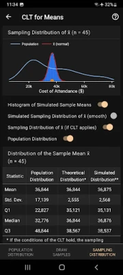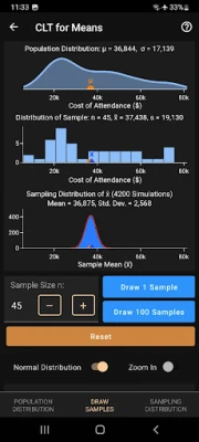 The Central Limit Theorem (CLT) is a cornerstone of statistical theory. It states that the sampling distribution of the sample mean will approach a normal distribution as the sample size increases, regardless of the population's distribution. The app allows users to: