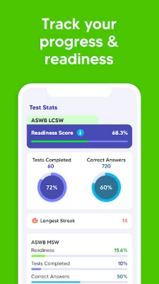 Moreover, our mobile app creates a personalized study plan tailored to your skill level, study habits, and target exam date. Unsure about your exam timeline? You can modify your study plan as needed. Our unique readiness score will guide you in determining when you are prepared to take the actual ASWB exam, increasing your likelihood of passing on your first attempt.