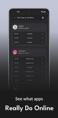 - Access connection logs per app for detailed insights.