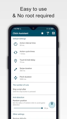 - Custom Click Parameters: Set specific parameters for your clicks, including delay, touch duration, and the number of repetitions, allowing for precise automation.