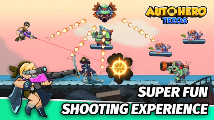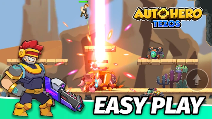 Step into the thrilling world of Auto Hero Tezos, a captivating 2D platform battle shooting game that redefines the genre with its unique auto-shooting mechanics. In this action-packed adventure, players take on the role of a muscular commando, navigating through challenging levels while the game handles the firing automatically. Get ready to face relentless monsters that will stop at nothing to thwart your mission!