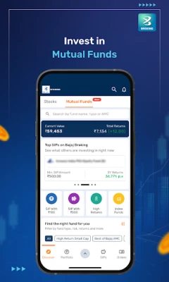 Start your investment journey with the Bajaj Broking app. Whether you want to invest in mutual funds via SIP or lump sum, trade stocks, or open a demat account, everything is available in one convenient app. Join millions of satisfied investors who trust this platform for their trading and investment management needs.