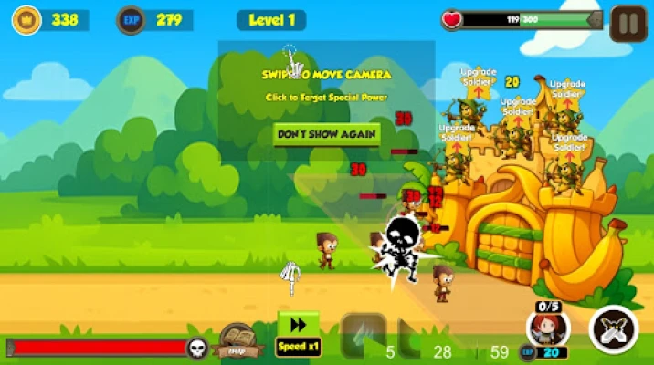 Meet a cast of cute and crazy Banana Heroes, each with their own unique abilities. Choose your favorites and strategize their placement to maximize your defense against waves of enemies.