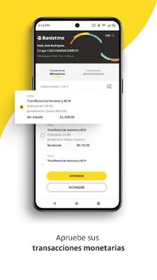 Banistmo's Online Banking for Business App simplifies the approval process for various administrative and transactional tasks. Whether you need to authorize payments, manage payroll, or oversee other financial activities, the app provides a user-friendly interface that allows you to complete these tasks swiftly. With just a few taps, you can ensure that your business operations run smoothly and efficiently.