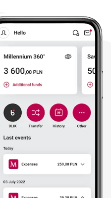Access to the Bank Millennium mobile app is secured with an individual PIN code or fingerprint login, ensuring that all operations are confirmed with an additional password for your safety.