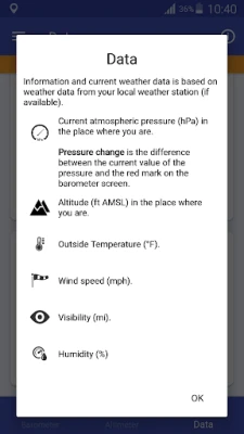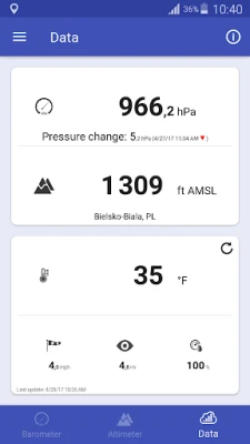 - Barometric Pressure: If your device is equipped with a pressure sensor, you can obtain accurate barometric pressure readings. Otherwise, the app will check online data for accuracy.