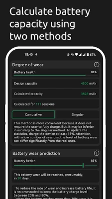Wondering how long your battery will last? Battery One's experimental feature predicts battery wear based on your unique usage patterns. By leveraging a complex algorithm, this feature provides valuable insights into your battery's future performance, helping you plan accordingly.