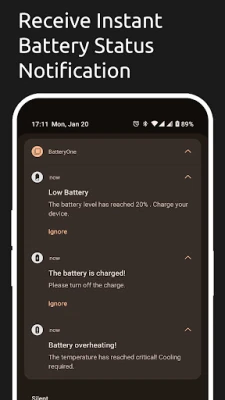 Take charge of your smartphone's battery life with Battery One—the ultimate all-in-one tool for monitoring, optimizing, and maintaining battery health. With its advanced features and user-friendly interface, Battery One is your go-to solution for ensuring your device remains powered and efficient for years to come.