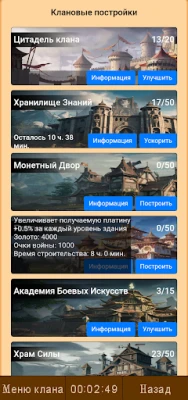 Each clan can construct and upgrade its own buildings, which provide numerous advantages, including additional experience points, increased income, and improved character attributes. The blessings obtained from clan structures amplify players' combat and economic potential, transforming them into formidable allies in any battle.