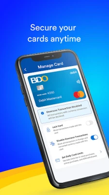 One of the standout features of the BDO Online app is the ability to secure your debit cards in real-time. You can easily lock or unlock your card with just a few taps. This feature is particularly useful if you misplace your card or suspect unauthorized use. Additionally, you can disable overseas debit card transactions to prevent any international fraud. Setting debit card limits allows you to manage your spending effectively, giving you peace of mind while you shop.