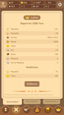 As a ruler, maintaining high authority among your subjects is crucial. A beloved leader finds it easier to collect taxes, which are essential for funding your kingdom's projects. Strive to create a positive relationship with your people, as their loyalty will directly impact your reign's success. Remember, a well-fed population is a happy one, so prioritize their needs to foster a thriving community.