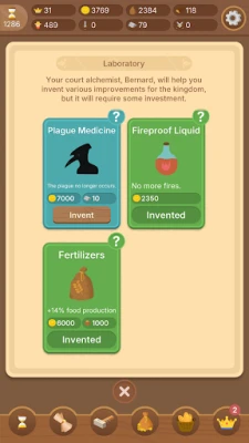 Your journey to restore the kingdom is supported by your royal alchemist and scholar, Bernard. He will guide you in scientific advancements that can enhance your kingdom's infrastructure. Conduct research to improve sawmills and mines, ensuring efficient resource extraction. Additionally, protect your granaries from potential disasters, as safeguarding your food supply is paramount for your population's survival.