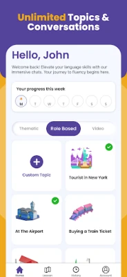 - Personalized Conversations: Engage in conversations tailored to your speaking level, focusing on topics that resonate with your life and interests.