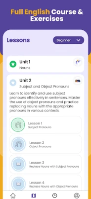 - Comprehensive Lessons: Reinforce your learning with English lessons and exercises designed to help you apply what you've learned in engaging conversations.