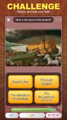 - Extensive Question Bank: Dive into hundreds of questions covering Scripture, biblical characters, teachings, and pivotal events.