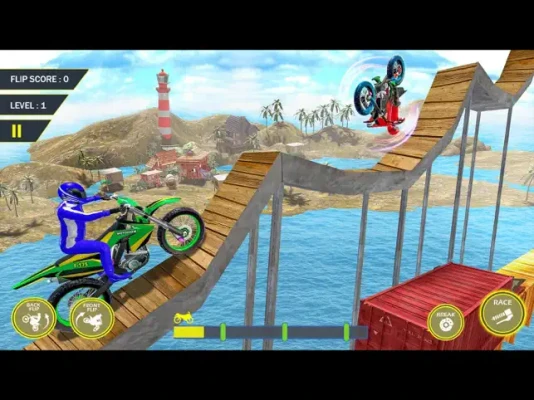 Playing Bike Racing Mega Ramp Stunts 3D is a breeze, yet mastering it is a true challenge. Unlike traditional hill climbing and tricky stunt car games, this game requires you to cross various checkpoints. Swerve through obstacles and reach the finish line in record time to claim your spot at the top of the leaderboard.