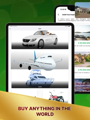 - Luxury Lifestyle: Accumulate rare items, yachts, luxury cars, private jets, and more as you build your wealth.