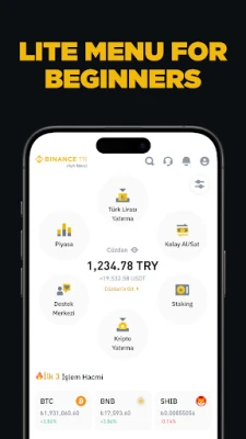 Whether you are a novice or an experienced trader, Binance TR offers two distinct interfaces: the Quick Menu for beginners and the Main Menu for advanced users. Utilize features like Buy/Sell, Convert, Automatic Investment, and Staking to create a personalized investment plan that suits your trading style.