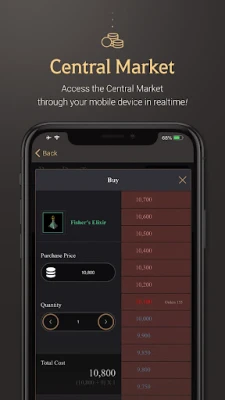 In addition, the app also features a Mobile Central Market, allowing players to buy and sell items on the Central Market at any time and from anywhere. This can be especially useful for players who may not always have access to their computer or the game itself, but still want to participate in the market and make trades.