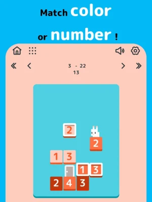 To successfully navigate the blocks, the bunny must land on blocks that match either in color or number. For instance, if she is currently on a red block labeled '3', she can jump to any other red block or any block labeled '3'. This rule mirrors the familiar mechanics of the card game Uno, adding a layer of strategy to your jumps.