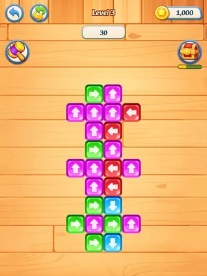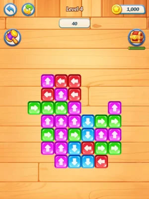 Each level in Block Mania: Tap Away presents a unique challenge with blocks marked by directional arrows. Your objective is simple yet engaging: tap a block to set it in motion according to its arrow's direction. If the path is clear, the block will exit the level successfully. However, if another block obstructs its way, the tapped block will halt upon collision. The ultimate goal is to remove all blocks within a limited number of moves. Fail to clear the level in time, and it’s game over!