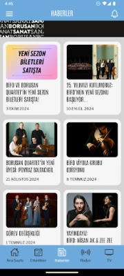 Our online video platform, borusansanat.tv, is integrated into the app, allowing you to watch concert recordings from the current season. Relive the magic of live performances or catch up on any concerts you may have missed. With high-quality video streaming, you can enjoy the artistry of our musicians from the comfort of your own home.