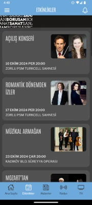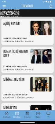 With the Borusan Sanat mobile app, you can quickly access information about upcoming events and concerts. Whether you are interested in the mesmerizing performances of the Borusan Istanbul Philharmonic Orchestra or the intimate settings of the Borusan Quartet, our app ensures you never miss a beat. Get real-time updates on news and announcements, making it easier than ever to stay connected with the vibrant world of Borusan Sanat.