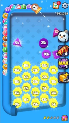 Playing Bounce Ball is a breeze! Just swipe your finger to aim your vibrant ball, then release to send it soaring through the air. Watch in awe as it bounces and zooms around the screen! The real magic happens when two balls of the same number or color collide—BOOM! They merge into a larger, more powerful ball. Start with humble twos and work your way up to impressive fours, powerful eights, and even mind-blowing millions!