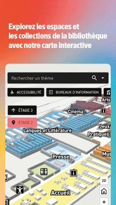 The app introduces a new interface called ExplorezLaBpi, which provides an interactive map of the library's collections. This feature allows you to navigate through various spaces and resources effortlessly. Whether you’re searching for a specific book or looking to discover new materials, the mapping tool enhances your ability to find what you need quickly.